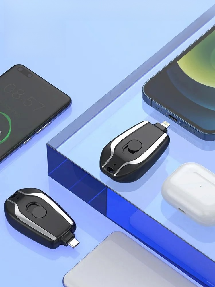 미니 사이즈, 경량 디자인, 1500mAh 대용량 배터리, 급속 충전, 열쇠고리 모양, 휴대 편리~